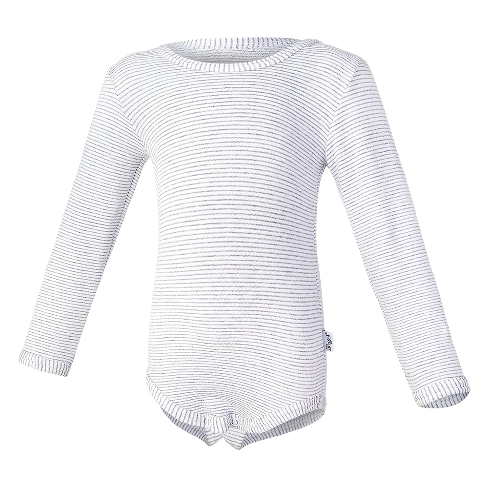 Body ze silného úpletu s dlouhým rukávem skvěle využijete především v chladných měsících. Je vhodné jako spodní vrstva při oblékání na ven, ale v kombinaci s tepláky nebo dupačkami je možné jej nosit i doma. Body je vyrobeno z pružného příjemného materiálu, který se přizpůsobí více velikostem. Zapínání na druky je pouze v rozkroku body. Díky tomu je skvělé do autosedačky, nebo vajíček. V úrovni zapínacích pásů totiž nic nepřekáží, netlačí, ani neškrábe. Pro snadné oblékání je výstřih hlubší a skvěle pružný.