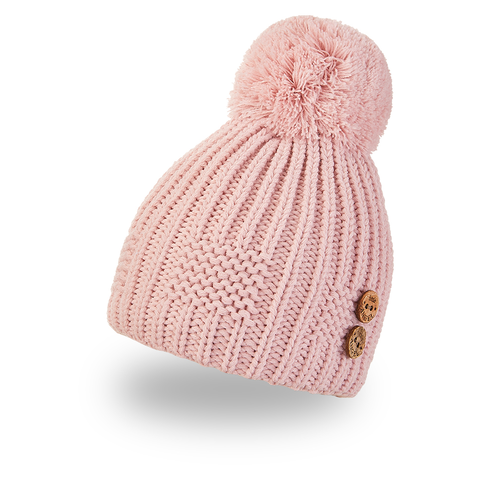 Čepice pletená bambule knoflíky Outlast ® - sv.růžová 5 | 49-53 cm