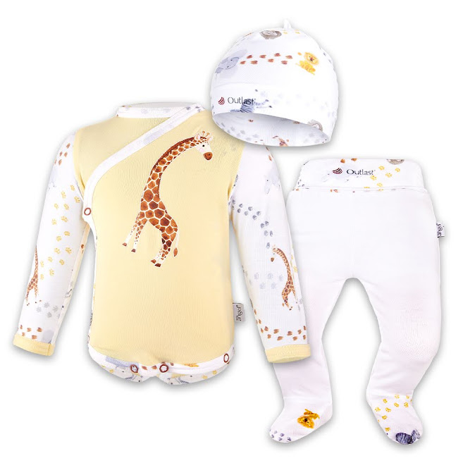 Kouzlo nespočívá pouze v módním, jemném, designovém provedení. Materiálové složení je totiž zárukou spokojenosti miminka. Materiálové složení všech kousků je tvořeno z jemného bavlněného úpletu, který je obohacen o termoregulační materiál Outlast®.