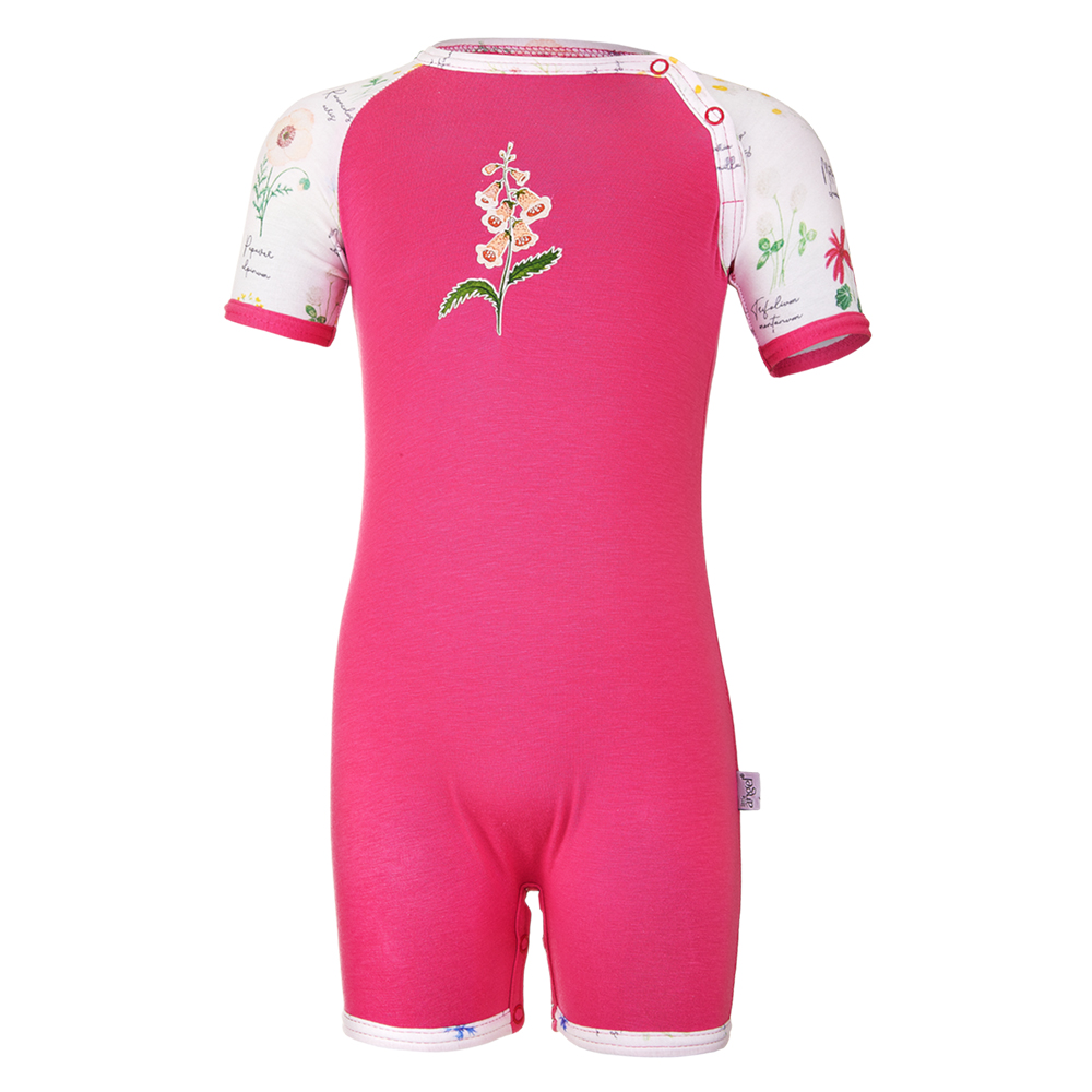 Díky pružnosti materiálu overal krásně přiléhá na tělíčko a nikde neodstává. Zapíná se na druky, které jsou umístněny na jedné straně u krčku a v rozkroku pro snadné přebalování.