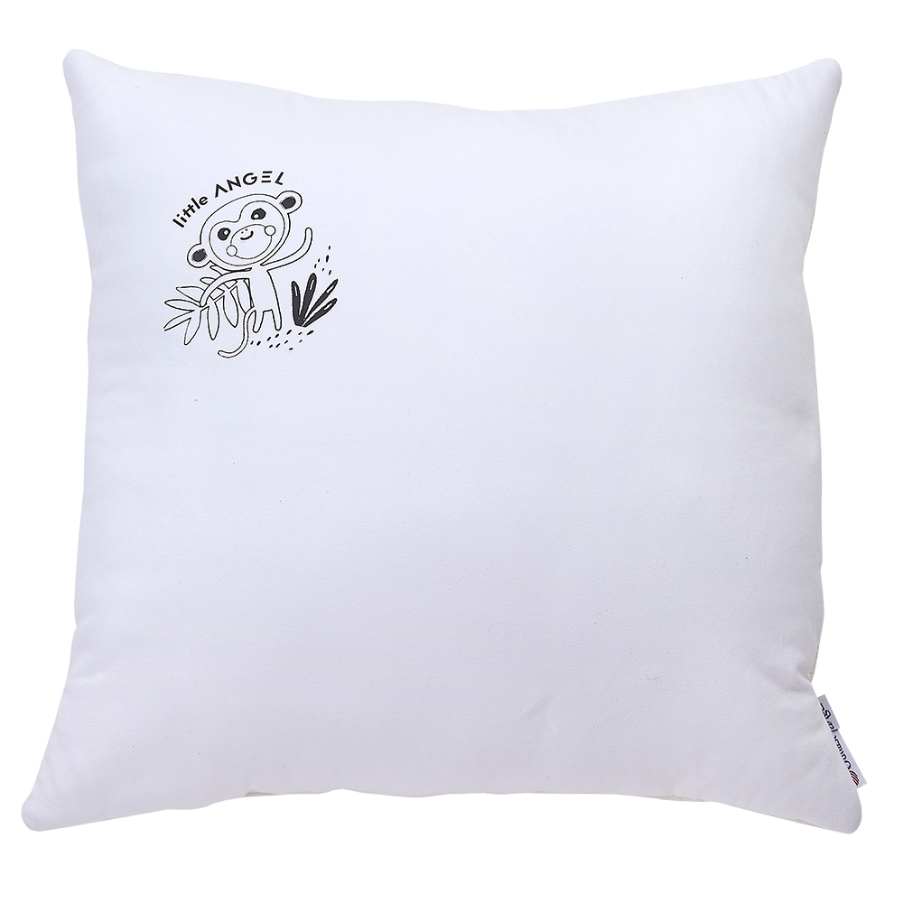 Polštářek s potiskem je skvělým doplňkem do postýlky nebo dětského pokoje. Potah polštářku je z jedné strany vyroben z mušelínové plenkoviny. Stranu s potiskem tvoří bavlněný úplet s příměsí termoregulačního materiálu Outlast®. Obě strany jsou podšité rounem a uvnitř je 200 g kuličkového rouna, takže polštářek můžete prát bez strachu z toho, že se vám zdeformuje.